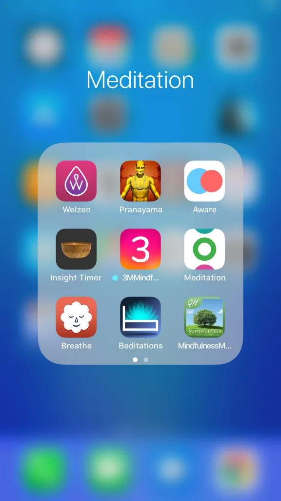 - Use an app to get started with meditation rather than trying to go it alone. There are many meditation techniques out there as mentioned earlier, but if you’re interested in getting started meditating I recommend apps such as Insight Timer, Welzen, Headspace, or Aware. I alternate between several apps and even use breathing apps like Pranayama. Here are some of the apps I have loaded on my phone: