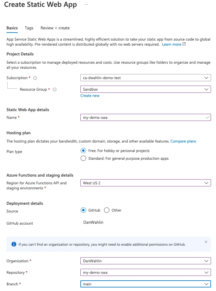Once your static web app and Azure Functions APIs are up on Github, you’re ready to create a static web app service in Azure. Let’s look at that process.