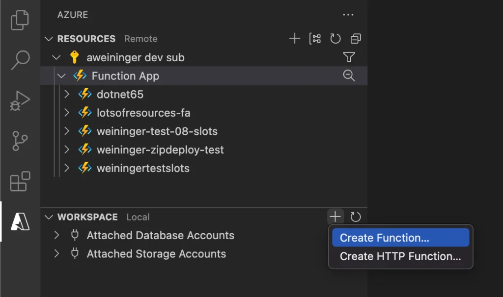 Creating a Function using VS Code and Extensions